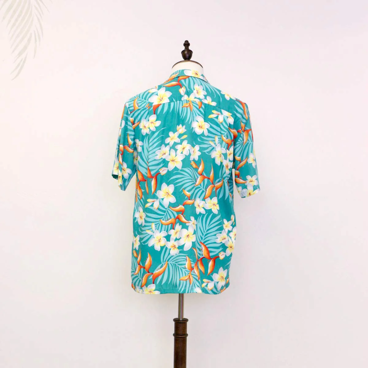 Plumeria flowers and heliconia, palm leaf prints are very Hawaiian feeling prints.??
