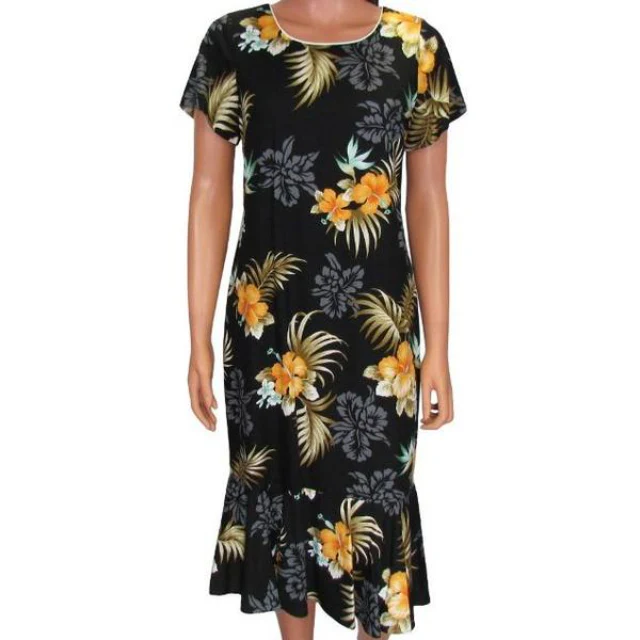 Half Sleeve Hawaiian Rayon Dress with White Orchid and White Background